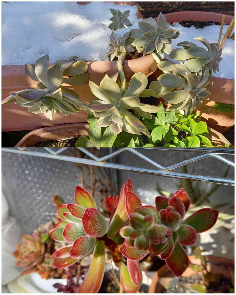 雪に埋もれながらも元気な朧月?と花芽をつけてくれている錦晃星