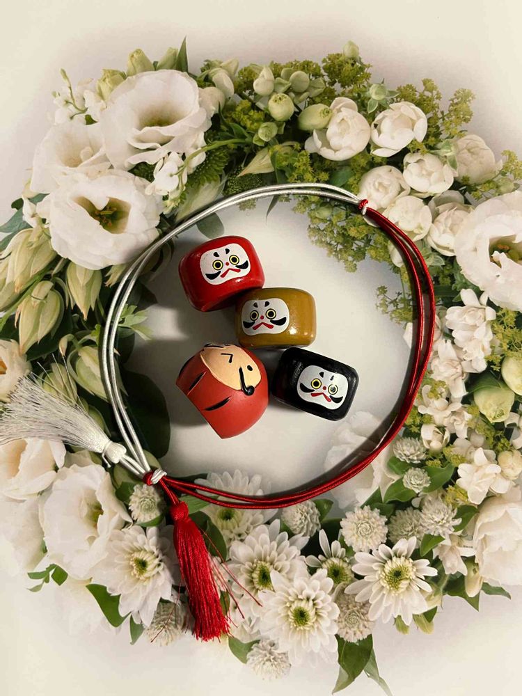 だるまさんもめちゃめちゃ可愛い💖けど、リースの白いお花たちがとっても素敵✨です💕