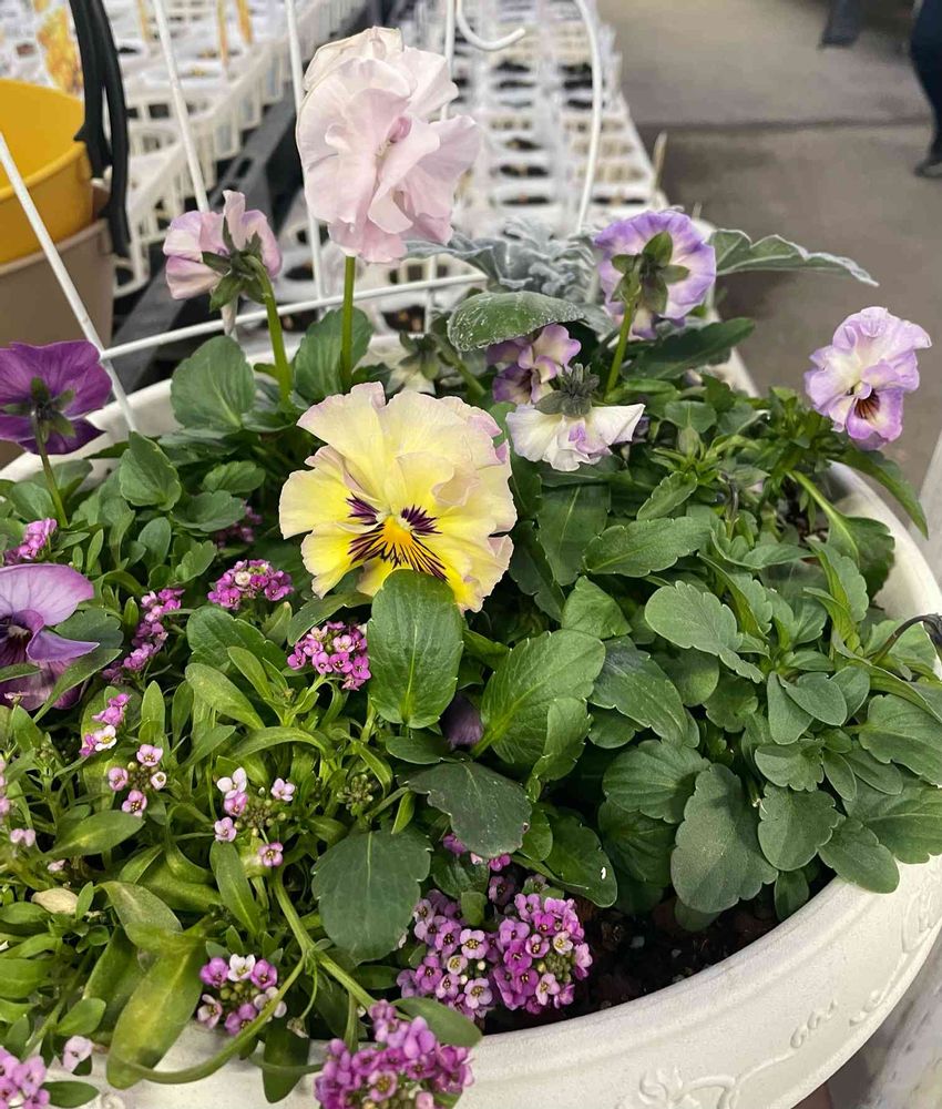 八重咲きパンジー・ラブリーシュシュとフリルパンジーの寄せ植えです😃