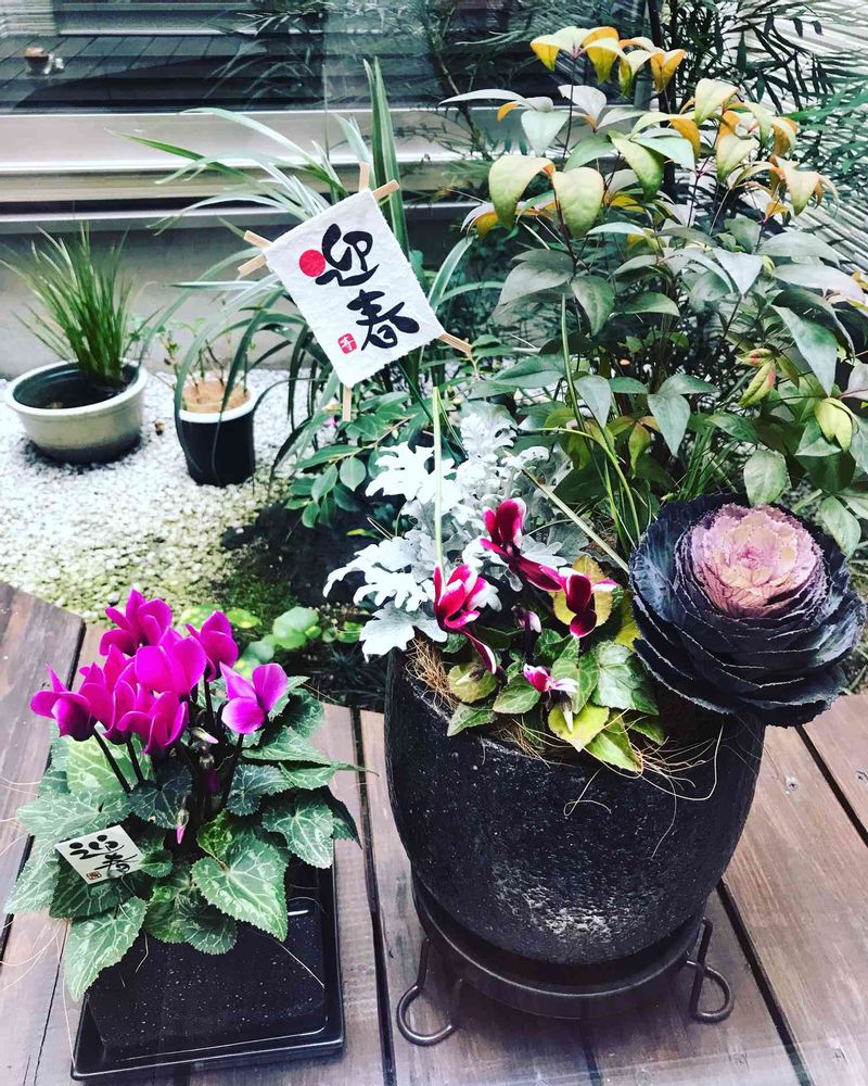 お正月らしい、落ち着いてて素敵な寄せ植え〜☺️
