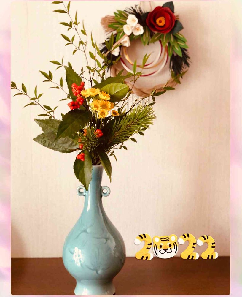 素敵な花瓶にお正月花を飾って、新年を祝う気持ちが表れてますね㊗️
