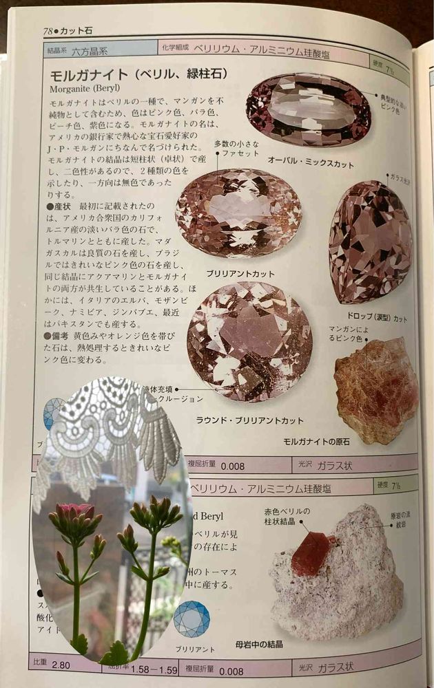 写真は愛読書?の「宝石の写真図鑑」日本ヴォーグ社 のモルガナイトのページです📖