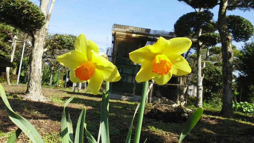 南側の鶏🐔だけが眺める場所に、ひっそりと咲く黄水仙─。