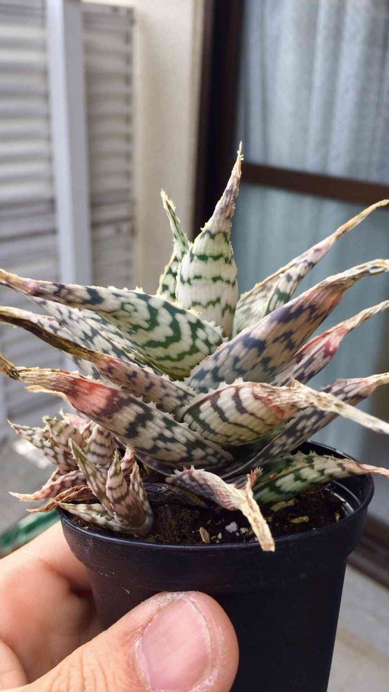 アロエ氏、寒さにあててしまい葉先が傷み、カラフル化へ。