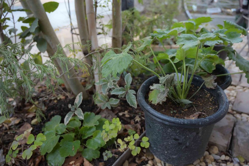 ラナンキュラスラックス、地植えひとつ、と、鉢が2つ。どれも2年目の苗です。