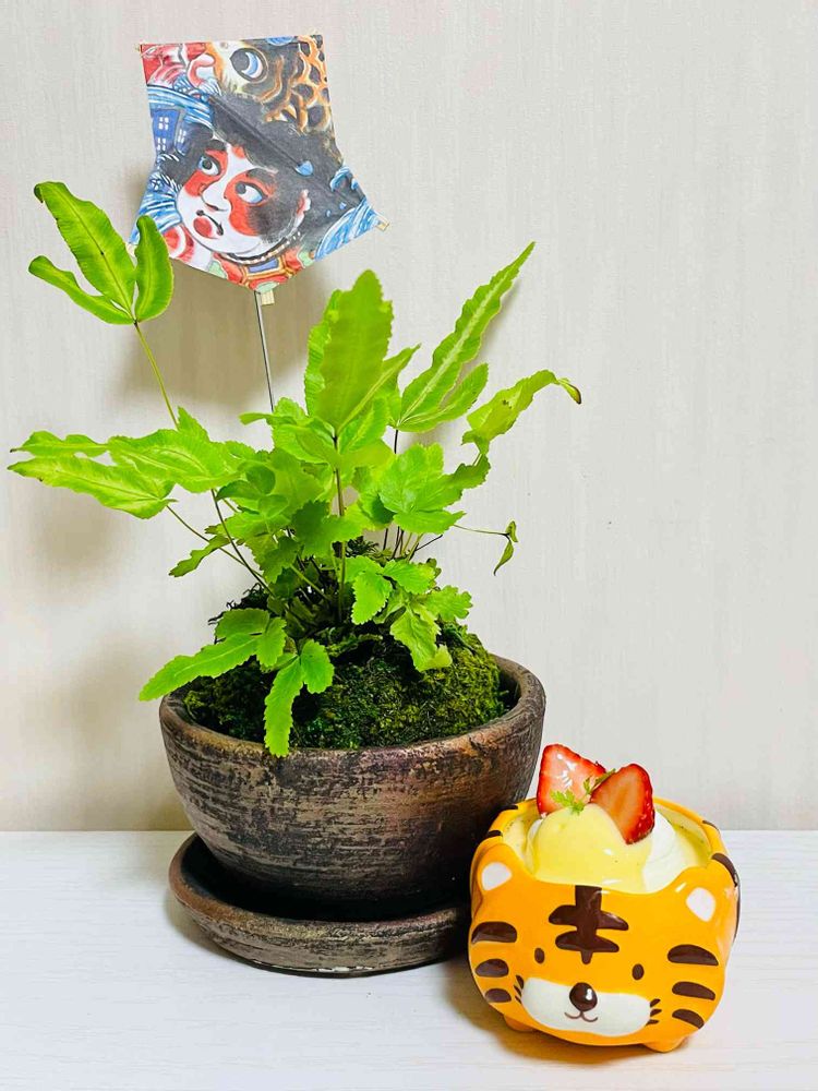 でもまだお正月な『苔玉 プテリス』さんと寅のプルプルプリン🐯🍮で