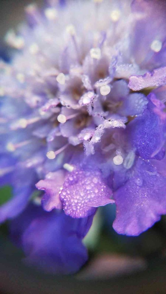 スカビオサ アップにするとこんな感じなのね。雨粒がとってもちっちゃい🍬