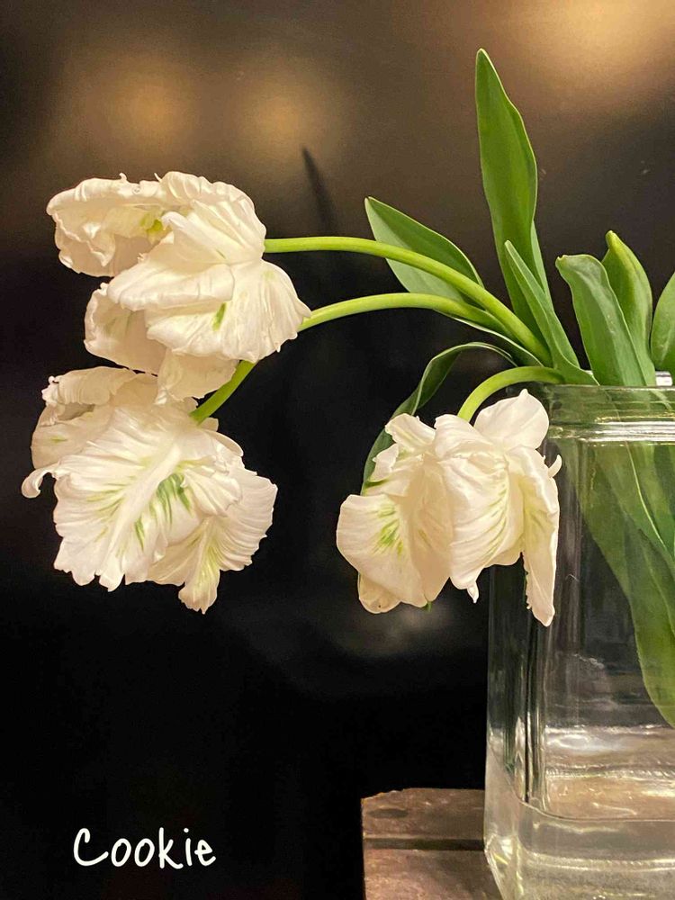 クリスマス、お正月を華やかにしてくれたアイスチューリップ、スーパーパロットをカットしました💕11月末に芽出し球根でお迎えし、少しずつ少しずつ開花して来ました😊花瓶には浅水で、でも思ったより水を吸います🤔葉っぱは水に浸からないように。下を向いてもまだ可愛い😍