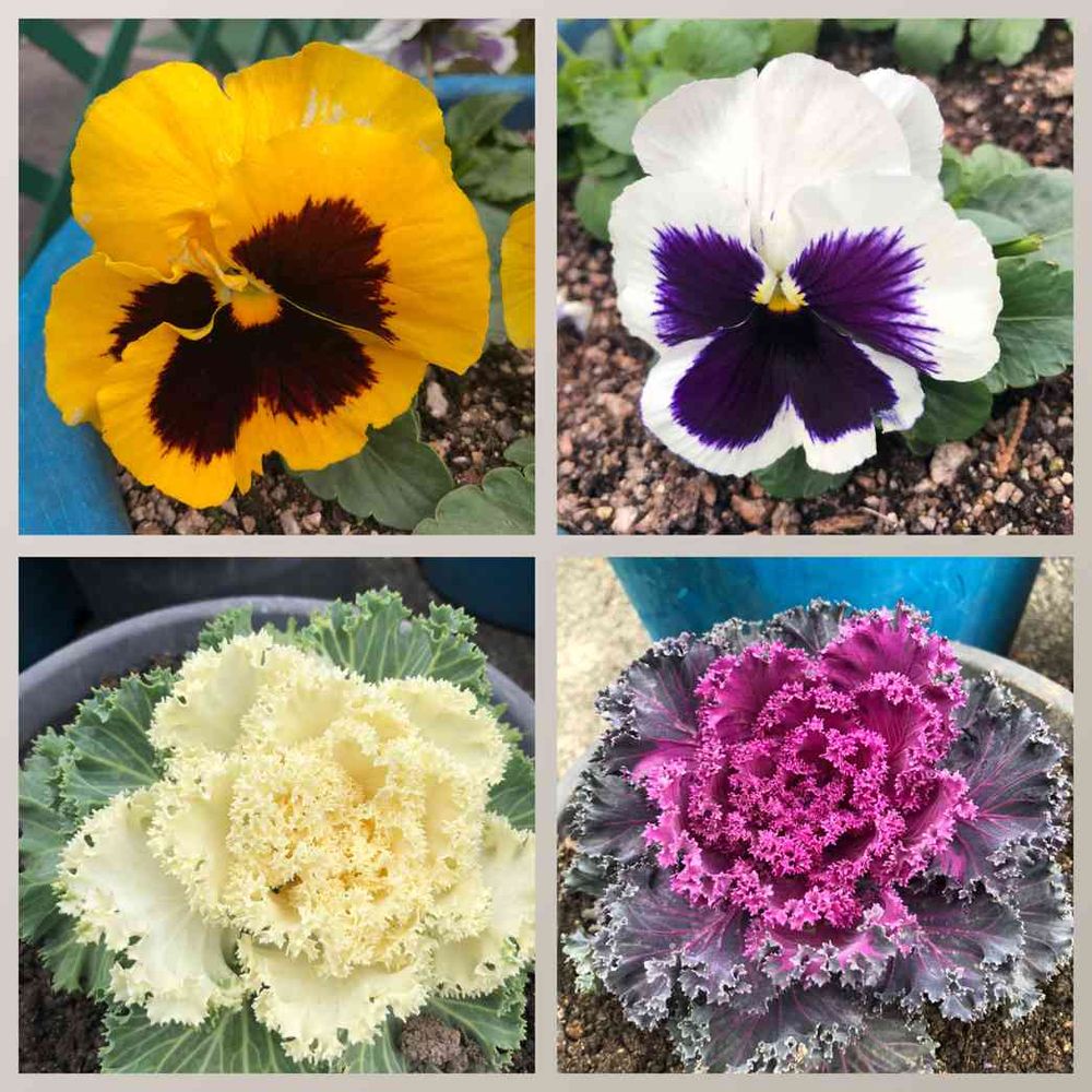 色鮮やかなパンジーと葉牡丹が寒空の下頑張ってます😊