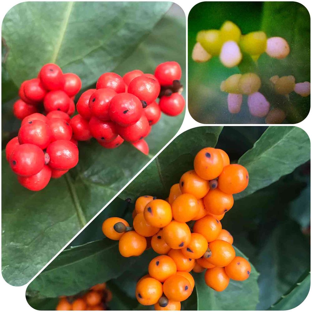 お正月に切り枝を買って供えるものですからセンリョウの花は始めて見ました。🥰