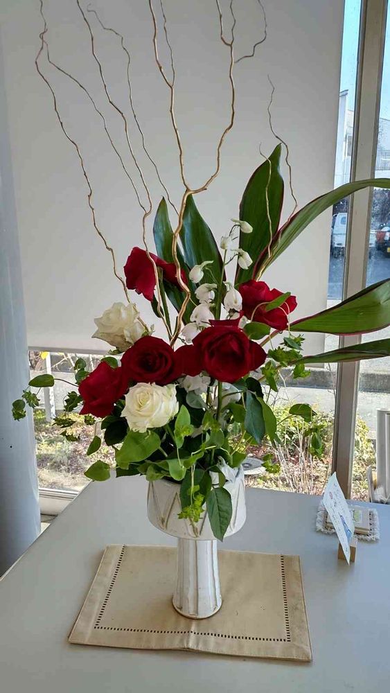 こちらはお出かけさきのいつもお世話になっている車屋さんの事務所に飾ってあった素敵なお花です👍💕和洋折衷な正月花かなあ。クリスマス前にお邪魔しましたが作った友人はちょっとクリスマスぽいんだけれどねと言ってました。素敵です〜💕