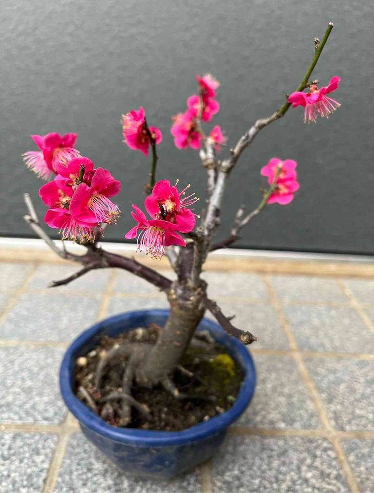 かわいい~😙紅梅の盆栽、ステキですね👍