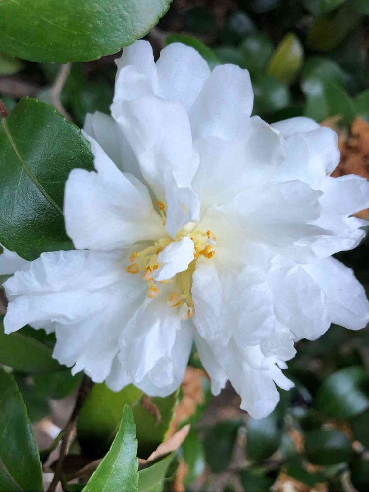 真っ白、きれいなサザンカです。🥰