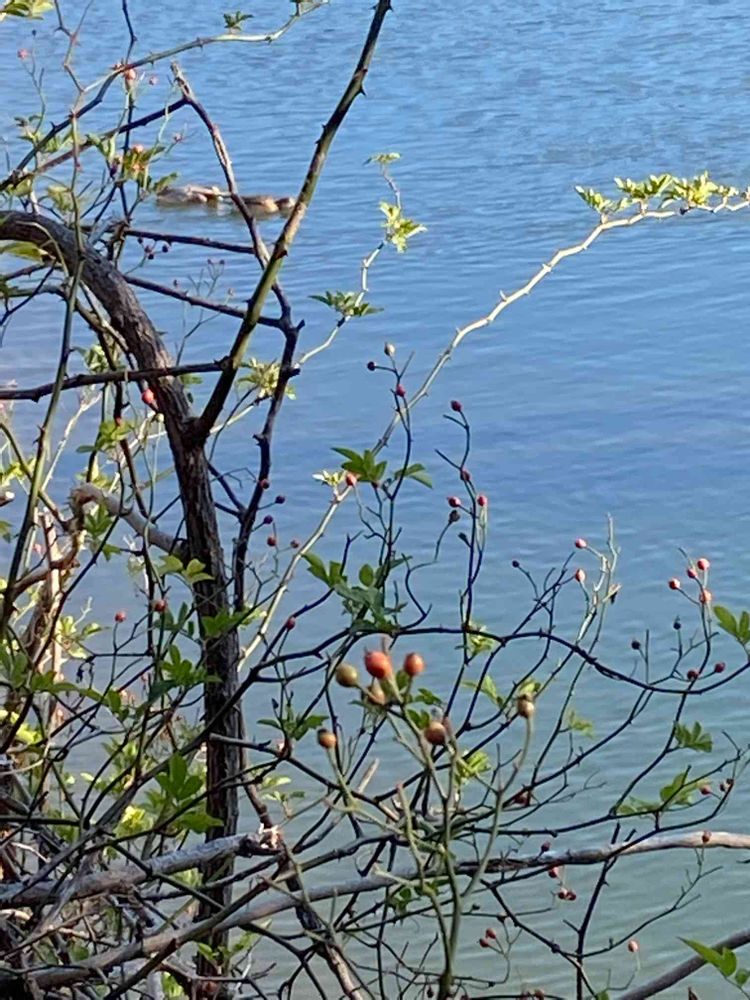 水辺のノイバラ、まだまだ沢山の赤い実がついています。野鳥達、気が付いているはずですが、美味しくないのか?トゲが痛いのがイヤなのか?・・などと思いつつ、ここを通るたび立ち止まって見てしまいます。
