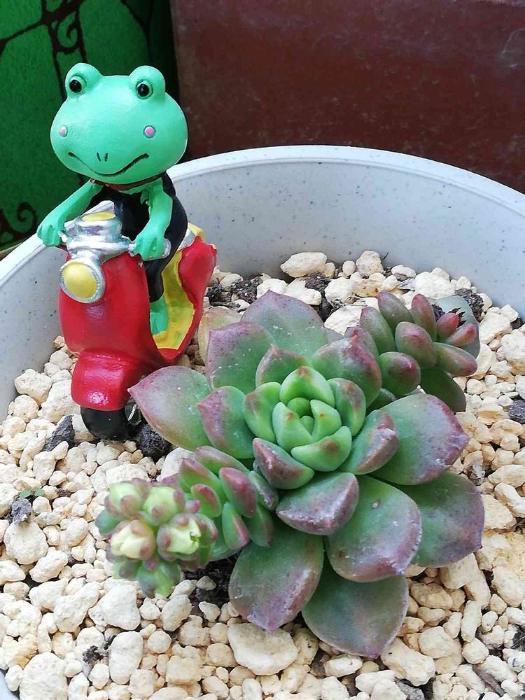 スクーターに乗ってるカエルちゃん、可愛い😍お友達のうちなんですね🌿