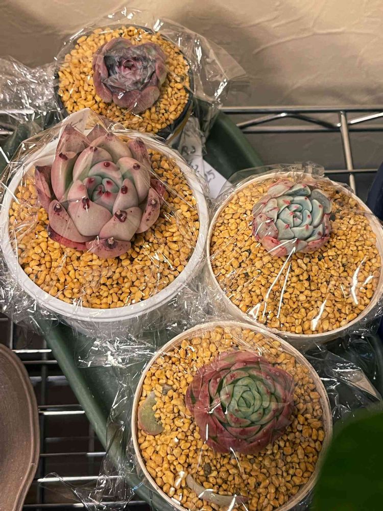 昨年末に ヤフオクで抜き苗を購入して外で発根を待っていましたがぜんぜん根が出そうにないので ラップで家の中に^_^ 昨年チョンパしたアガポイデスは、1日に見たら根がモサモサでした ラップ最強(^。^)