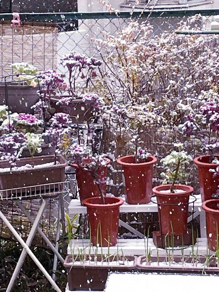 [@id:1255129] さん こんにちは😃積もりそうな雪❄️❄️❄️❄️ですねー 降り出しの頃に比べると落ちて来る速さが🤭😳違う!庭は5cmでは無さそうで〜す