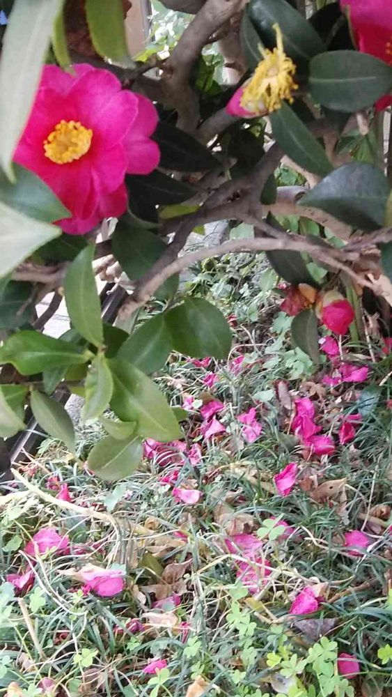 椿ではありません。花びらが一枚 一枚 散るのは 山茶花です。💞
