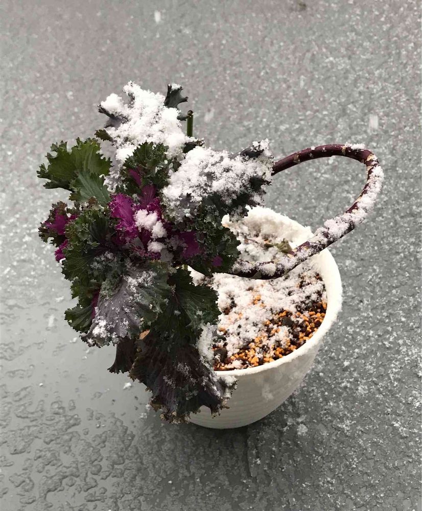 踊り葉牡丹に雪が積もっていきます❄️