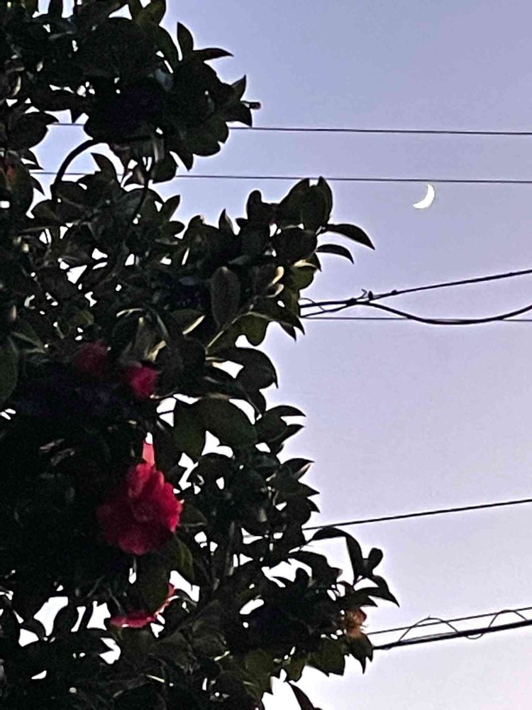 サザンカと三日月🌙✨…