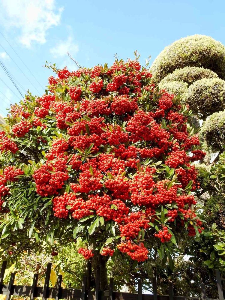 赤い実をモリモリつけて青空とコラボする❤️ピラカンサ❤️