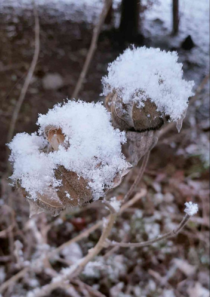 今日は枯芙蓉にも綿帽子❄️