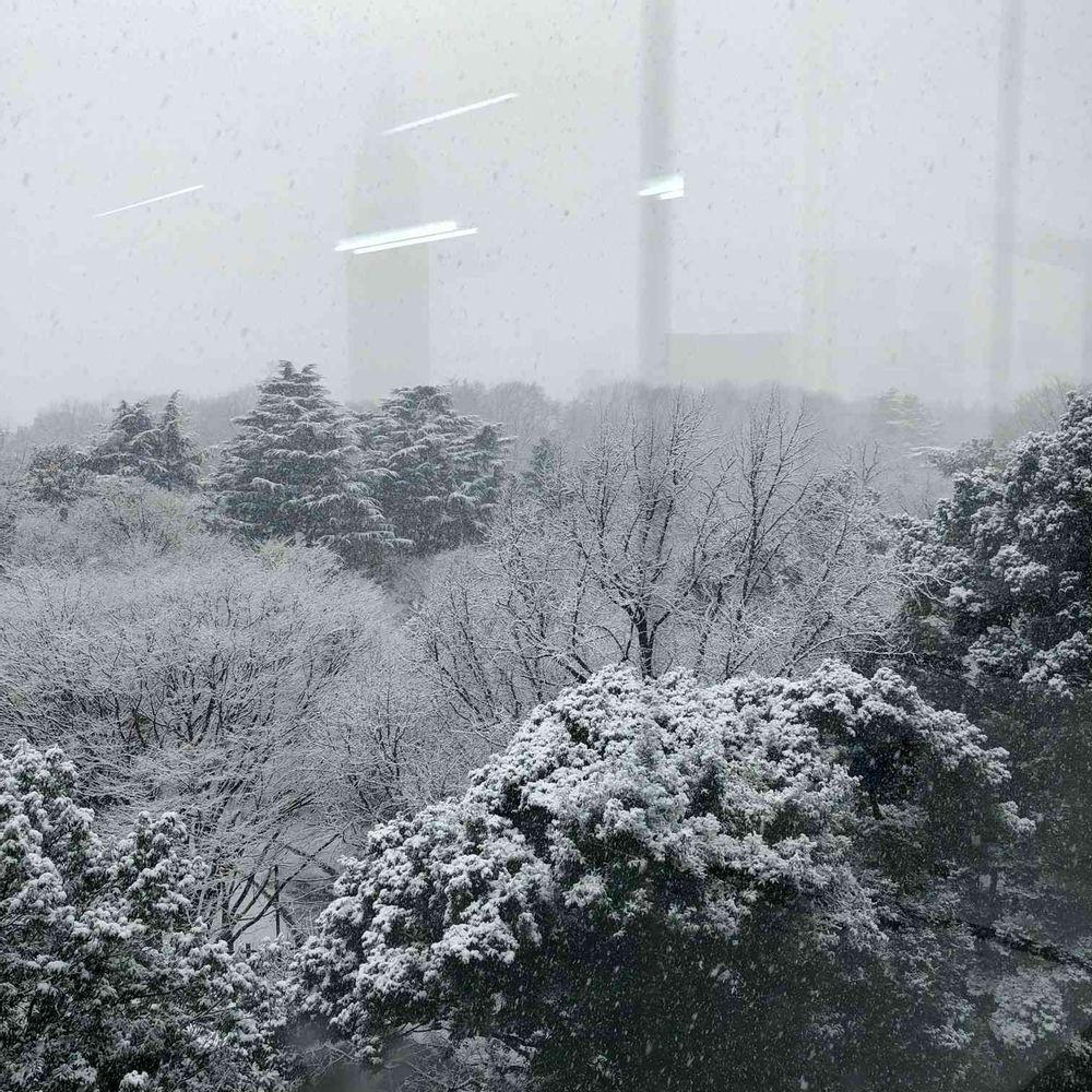 オフィスから見る新宿御苑の森も真っ白になりました😶🌫️