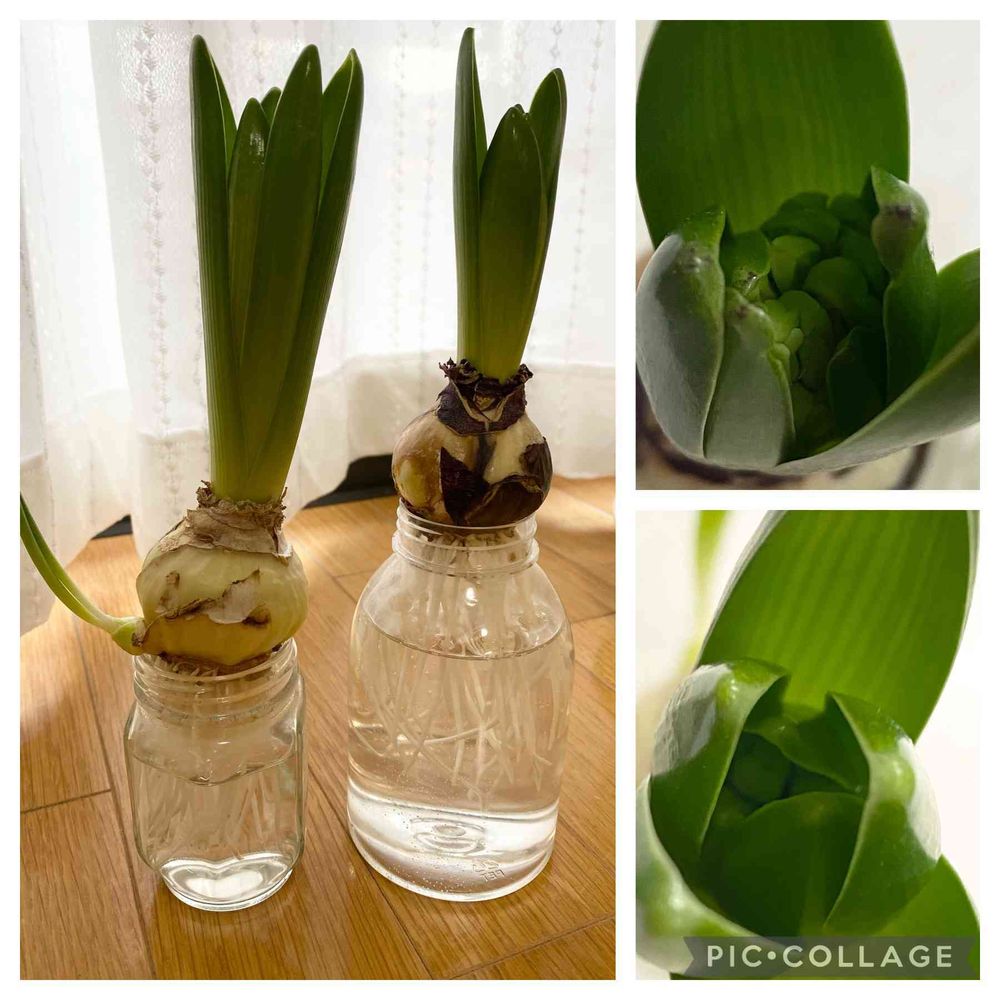 こうちゃんさんとこのヒヤシンスは根っこも葉っぱも勢いがいいし、気付いたらあっという間に咲きそう🌸