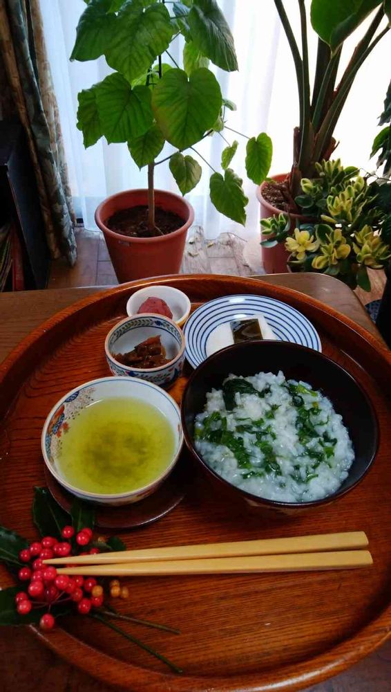 胃に優しい、七草がゆを食べて、季節の移ろい、健康を願う姿勢偉いなぁー☺