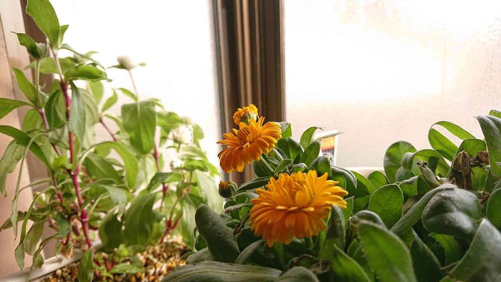 こちらも秋口に購入した金盞花。と千日紅は春過ぎぐらいかな?千日紅はハーバリウム用に活躍中。