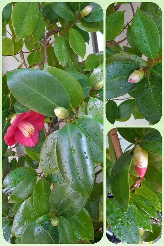 寒椿の優しい色💞 つやつや葉っぱ🌿〜癒やされて〜(*˘︶˘*).。*♡