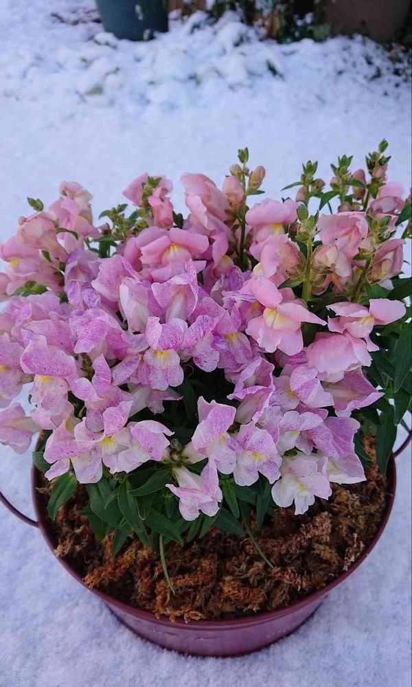 可愛い(*≧з≦)ピンクの色合いが雪❄️との、コラボにすごく輝いています☆⌒(*^∇゜)v素敵なキンギョソウ💖💖💖❄️❄️❄️💖💖💖❄️❄️❄️