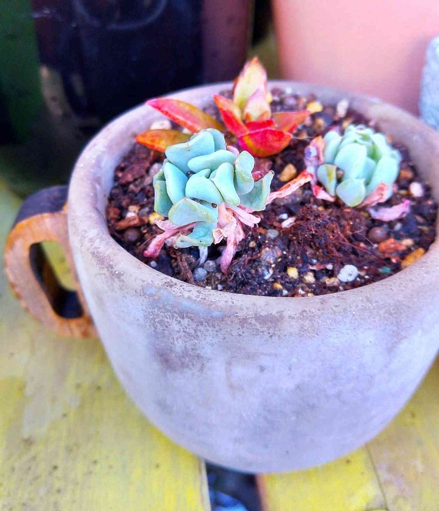 植え替えで余ったコーヒーカップ鉢にトプシー子株2個。どちらも充分根を張ってたから、寒さにも大丈夫かな?