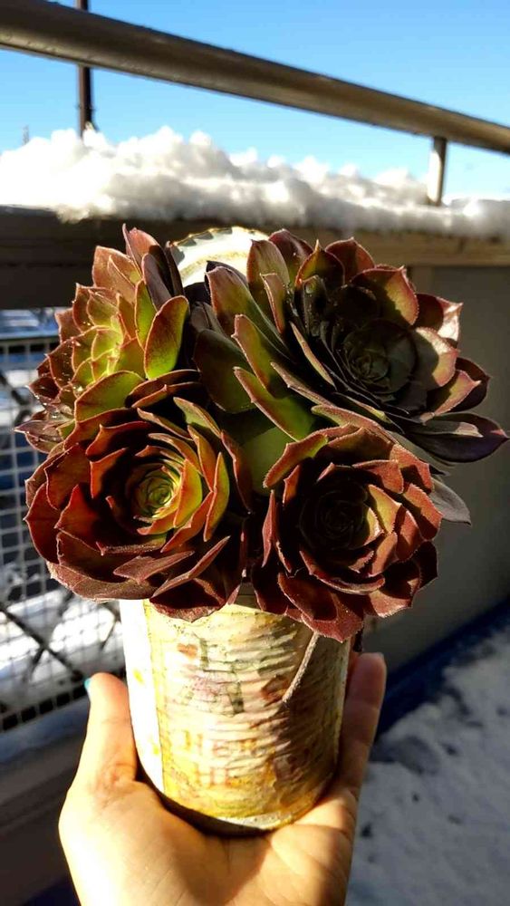 大好きなアエオニウムと雪で📸