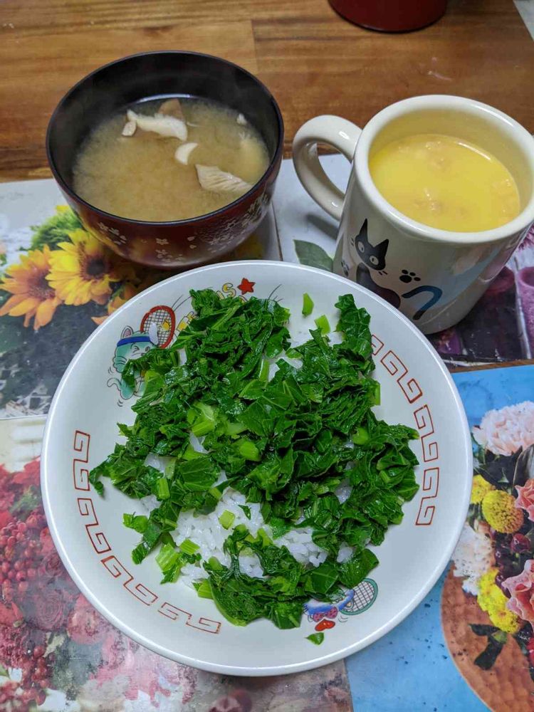 家で採れた明日葉と大根葉が、夕飯に、😋