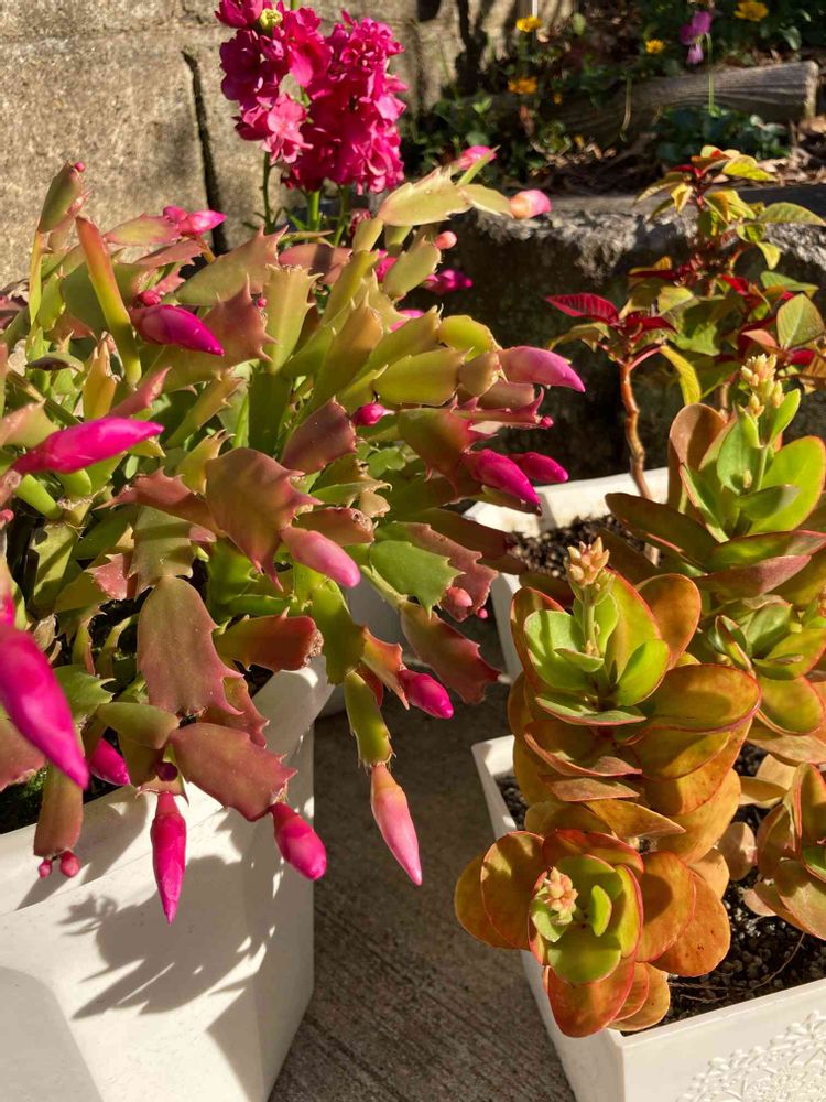 デンマークカクタスもカランコエも早く咲かないかな🌹 カランコエは去年の今頃は霜に当てて瀕死でした😭 おひさまの力を借りて、今年はこんなに復活してくれました✨