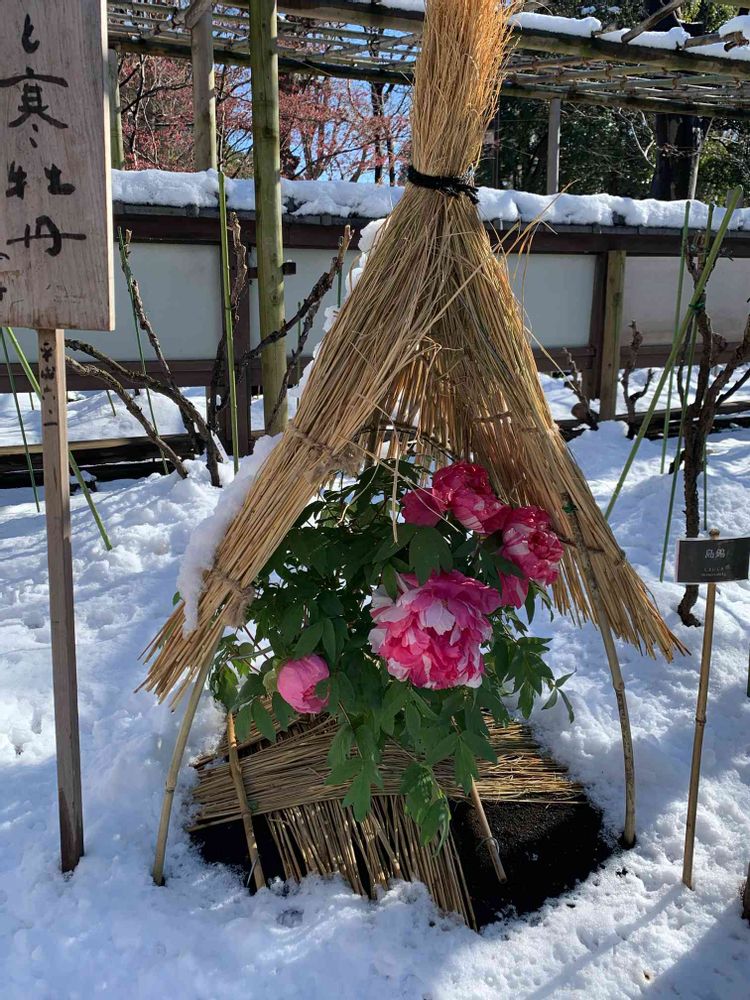 とても、綺麗ですね!!牡丹の花と雪が素晴らしいです☺
