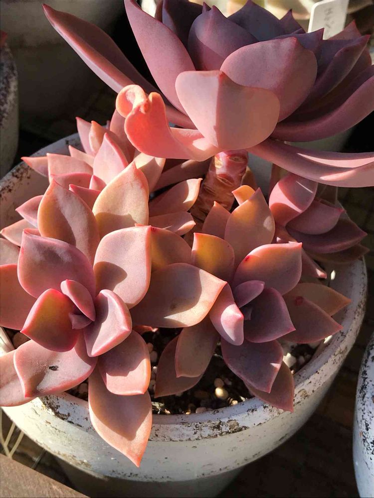 今、多肉ちゃん、お外だよね⁉️結構、寒暖差あるしね❗️そのせいかなあ😁こんなにピンクな初恋は初めてやー💕