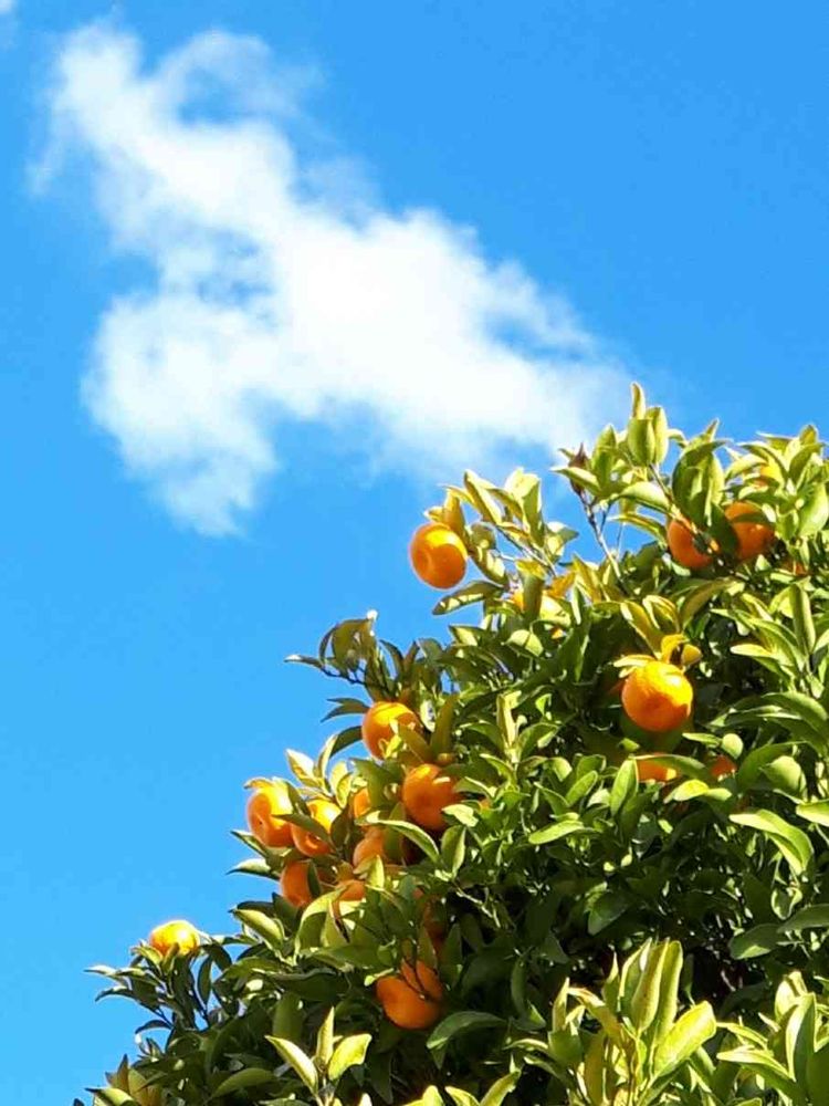 おはようございます。青い空にポッカリと浮かんだ雲。日本橘のオレンジ🍊