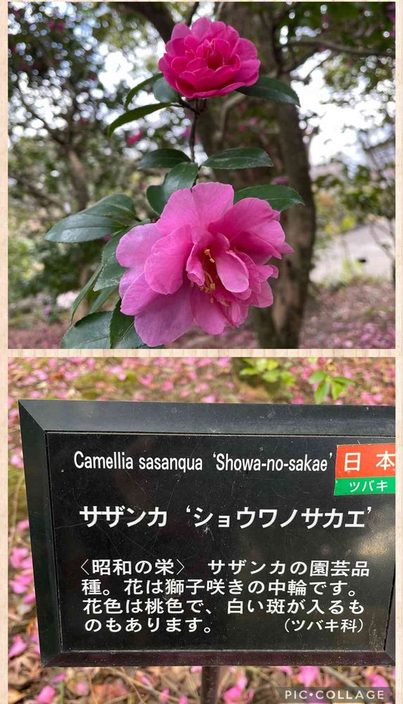 ピンクの獅子咲きの山茶花「昭和の栄」。名前はいかにも古めかしく、時代を思わせるが、花そのものはしっとりとした獅子咲きの中輪で、なじみやすい。と有ります💕