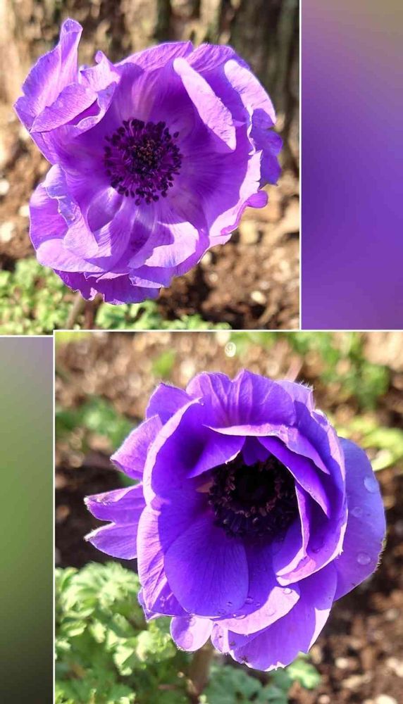 紫色のアネモネの花、雫を纏って綺麗です💕