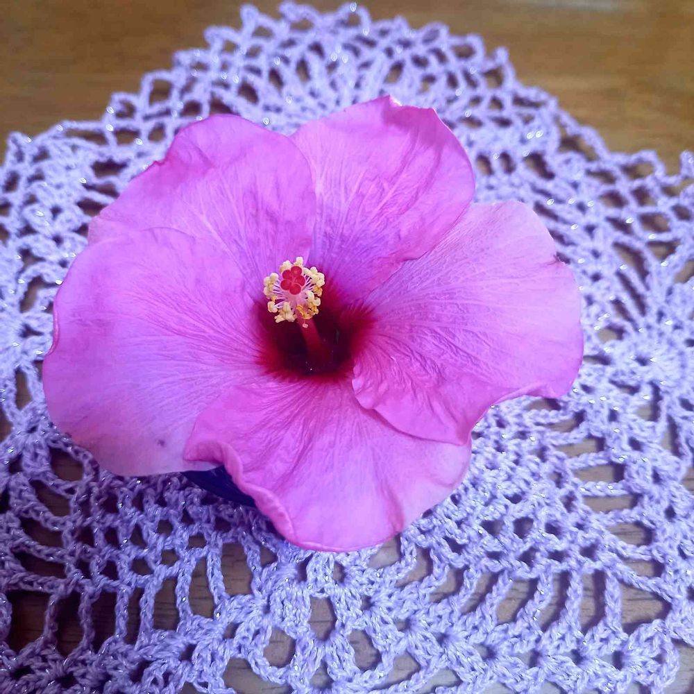 綺麗に咲きましたね🌺可愛いです🌺🌿🌺🌿🌺パープルのレース編みがとっても素敵です\(^o^)/