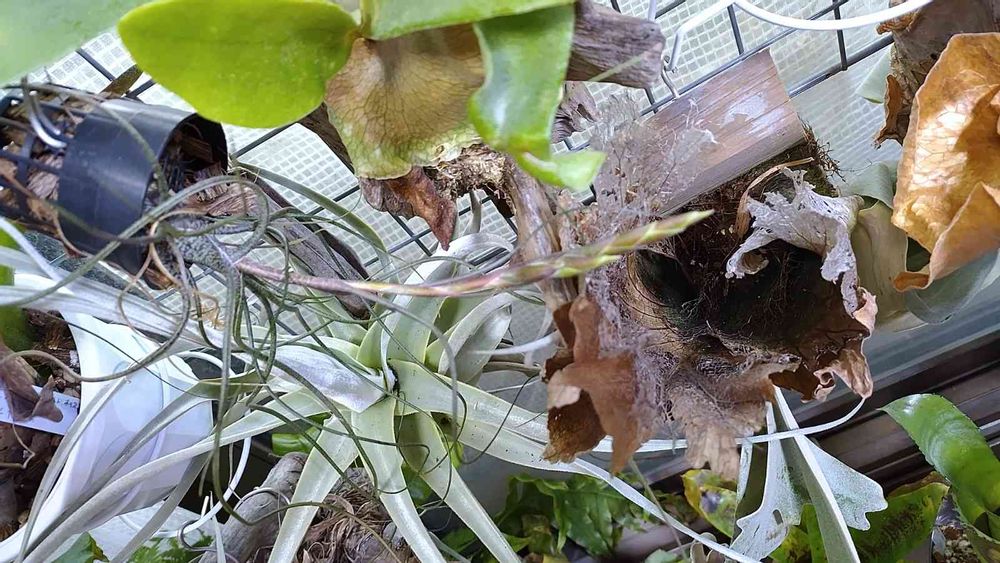 今朝は霜で真っ白な神戸エリアです。放射冷却で物凄く寒いです。ティランジア·ブッツィーさんの花芽が2つに成りました~頑張って受粉して貰いますね(笑
