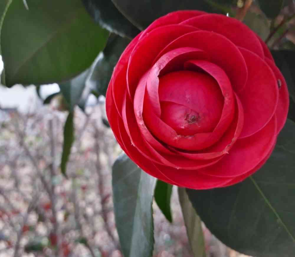 季節の変わり目、人間の節目にもふさわしい紅の椿🌼