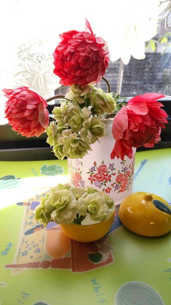 アネモネが、沢山咲いてるので、切り花にしたけど、恥ずかしそうに、下向いたまま🎶🎵🎵🎶