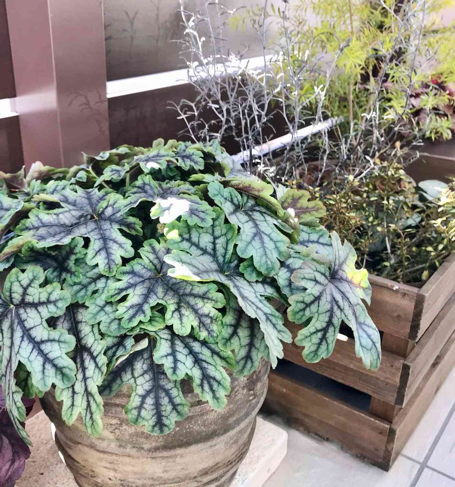 ヒューケラは小型の品種でも株幅が30㎝以上になるので、成長に合わせて鉢も大きくしてあげるとのびのび育つと思いますよ✨😊