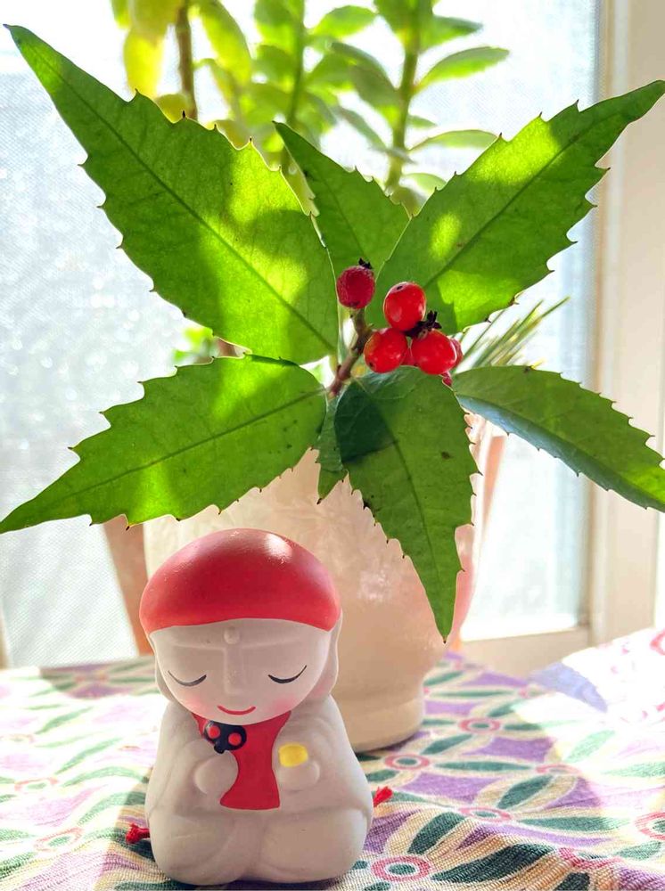 松も明けましたが、娘が可愛いお地蔵さんを持ち出してきまして😁 千両と一緒に飾ってみました✨✨