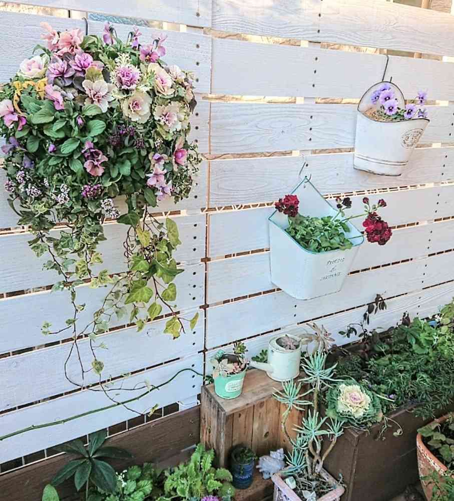 白いフェンスもハンギングも、ブリキのプランターも木箱の多肉ちゃんも💕