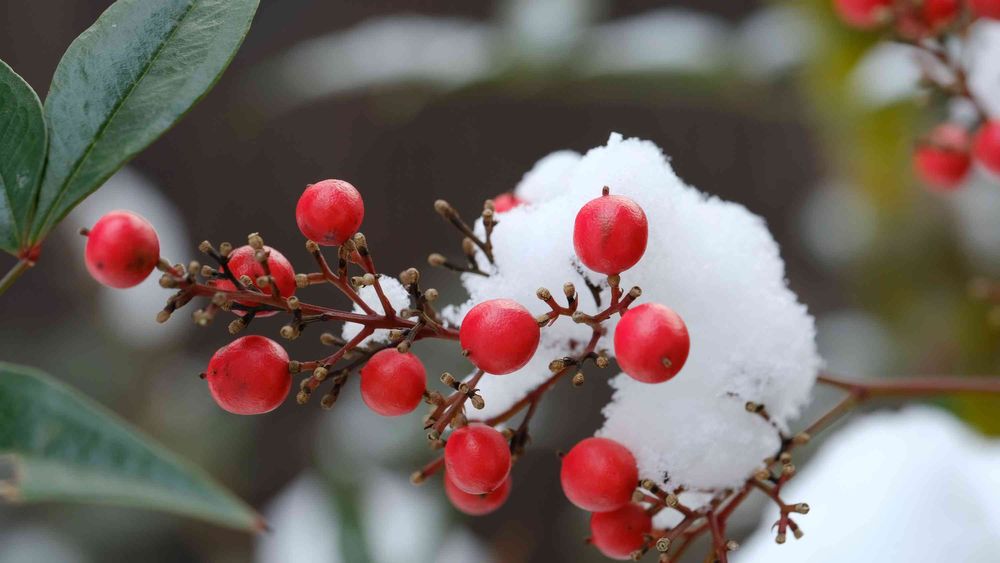 赤い実に雪は、似合いますが、南天の雪の帽子☃️が一番可愛い💕ですね。
