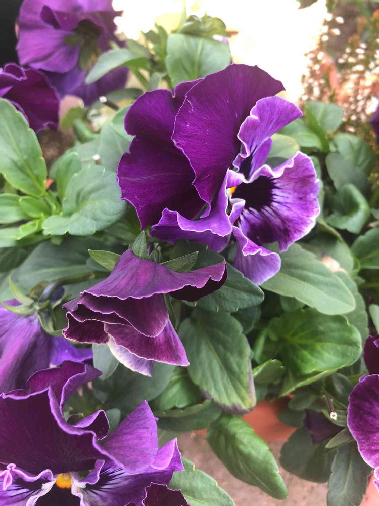 今日のパンジー💕葉牡丹その他と寄せ植えしてます🎶